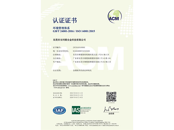 环境管理体系认证证书...